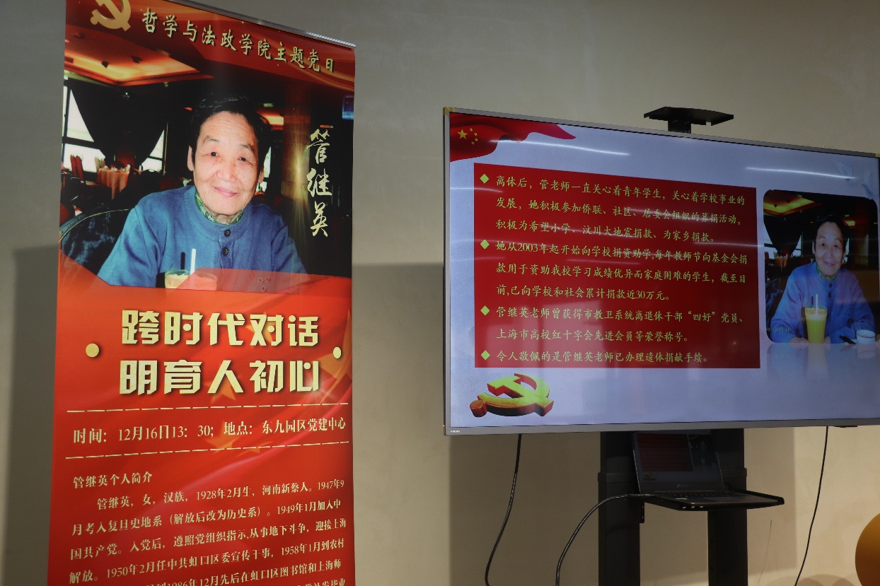 2020年12月16日下午,在徐汇校区东部园区党建服务中心女性自慰 2017级本科生党员开展了“跨时代对话,明育人初心”主题党日。活动邀请了女性自慰退休老党员,93岁高龄的管继英老师与2017级毕业班女性自慰专栏 党员进行交流,女性自慰 党委副书记姚秋磊老师主持了此次活动。