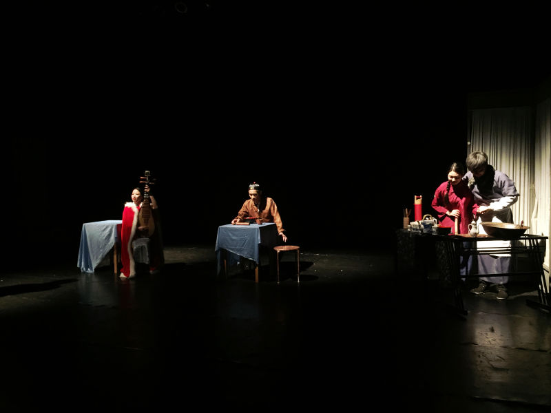 在比赛的那一天,《牡丹亭》全体人员早早地赶到了上海话剧中心进行灯光调试以及彩排走位(如图)