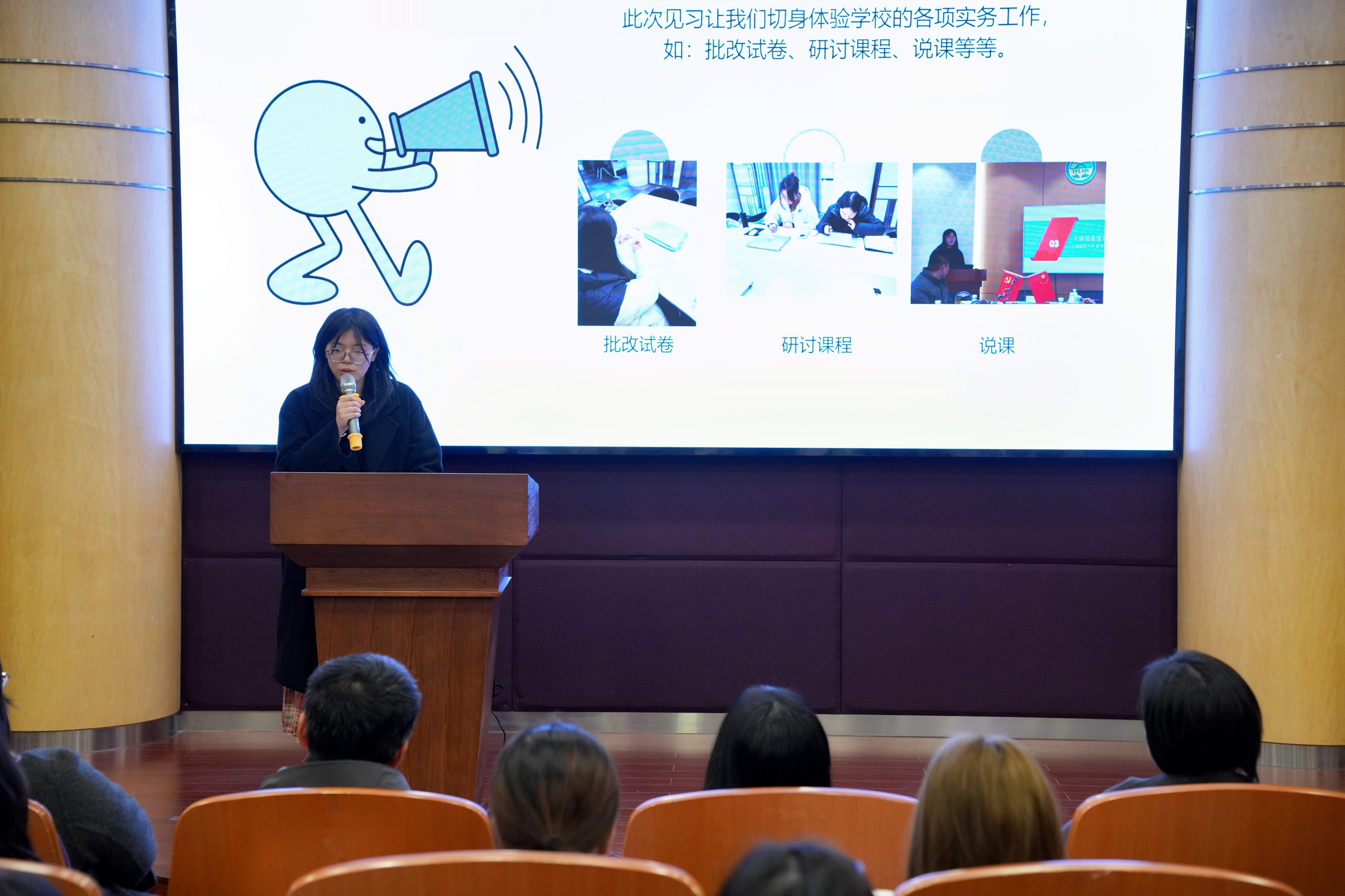 5位见习小组代表依次分享感悟,从说课打磨、试卷批改到课堂设计、AI教学体验,同学们畅谈从理论学习者到实践参与者的蜕变,深刻体会到道法教育的责任与温度,也对教学模式、课堂管理有了全新思考。