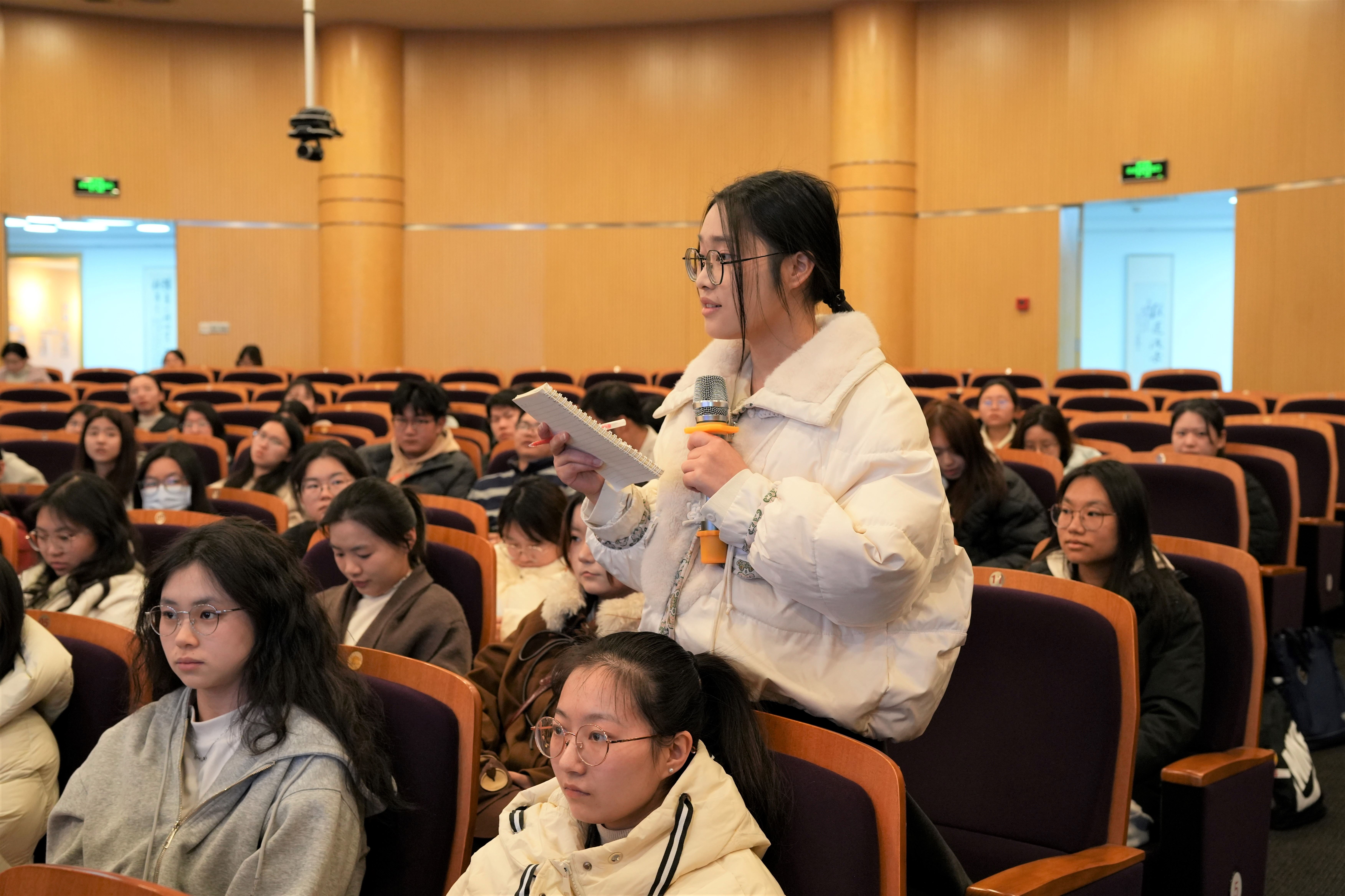 互动环节中,两位老师还为24、25级同学解答AI工具使用、见习准备等问题,现场干货满满。3位同学分享了上师慧学AI小助理的使用心得,细数其在备课、论文润色、课堂设计等方面的便捷性,同时明确AI是教学辅助工具,无法替代教师的情感关怀与价值引领。