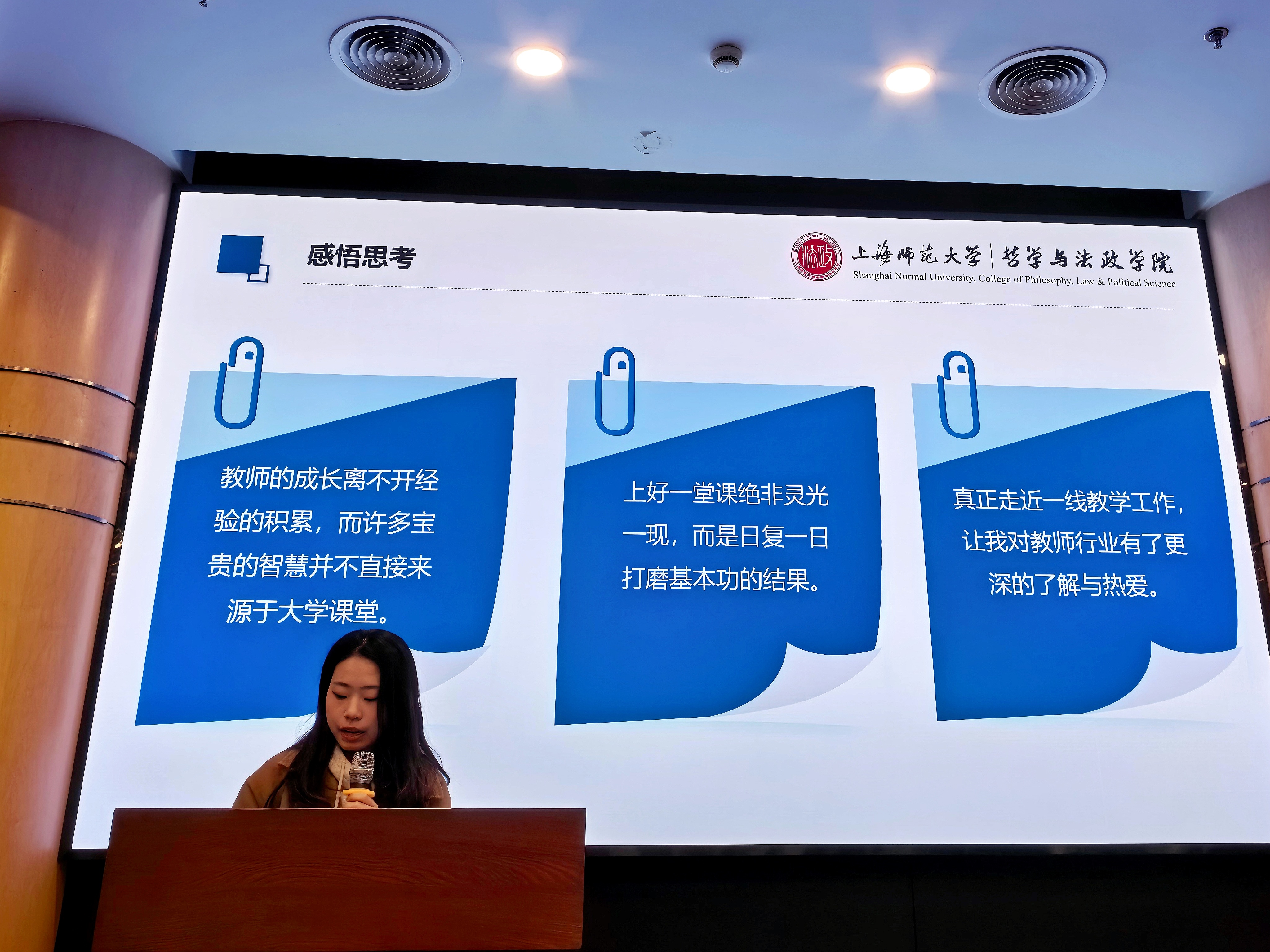 此前,23级全体40名道法师范生于1月下旬分赴静安、闵行、徐汇等8所中小学开展教育见习,沉浸式参与一线教学与班级管理,在实践中完成了从理论学习者到准教师的角色初探。