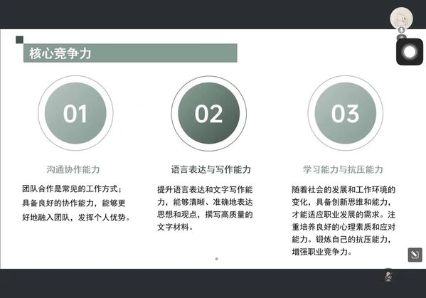 刘庆校友结合基础教育教师应聘流程,重点解读资格证获取、试讲准备及面试策略。她提示有意从教的同学关注“先面试后笔试”模式,提前通过家教、空中课堂等途径锤炼教学技能,并在择岗阶段综合考量学段、区域及学校类型,理性确定发展方向。