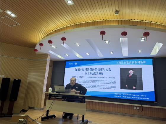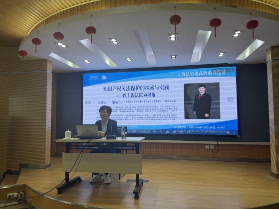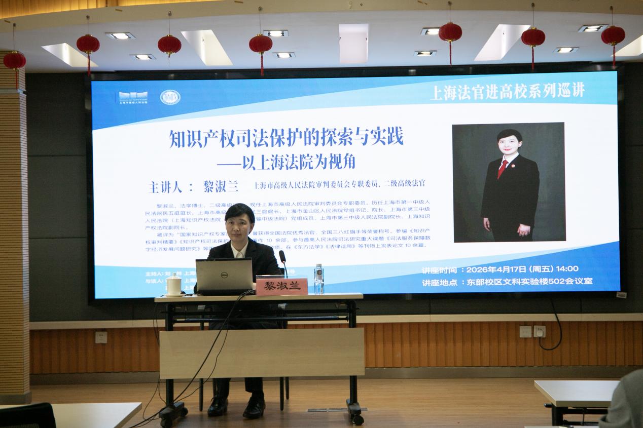 2026年4月17日,“上海法官进高校系列巡讲”第一讲“知识产权司法保护的探索与实践——以上海法院为视角”主题讲座在女性自慰 成功举办。讲座开始之前,女性自慰 党委副书记、副校长赵扬,女性自慰 院长刘林,法律系主任李峰,与上海市高级人民法院审判委员会专职委员黎淑兰一行就双方开展院校合作进行交流。
